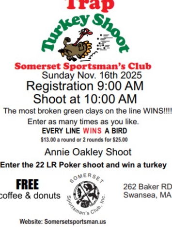 The purpose and reason for existence of The Somerset Sportsman’s Club, Inc. shall be to advance the cause of the protection, conservation and propagation of all our natural resources in general and particularly inland fisheries and game both in the Commonwealth of Massachusetts and our nation. To cooperate with other organizations of a benevolent, service, philanthropic or human nature and to promote a feeling of good fellowship with all other sportsman clubs.